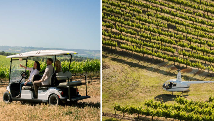 Elevate your wine tasting experience in South Australia with a once in a lifetime, exclusive helicopter tour visiting McLaren Vale, Langhorne Creek and Langhorne Creek with South Australian Helicopters. This full day tour is nothing but the best, offering a breathtaking aerial perspective of the regions, premium wine tastings, accompanying cheese and snacks, vineyard tours, 3 course lunch at Golding Wines, and so much more.